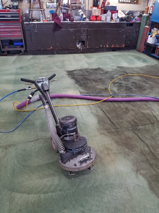 Any time i can take my shoe off, i will.My shop carpet at one time was installed in a moderate to high end motel. They were replacing all there rooms carpet i offered to haul away 5 rooms worth if they left them whole and cut them square i had um then cut to fit and seamed together so when i drove on them they wouldn't split apart and would lay relatively flat. This carpet is the second one in 37 years thats been in this shop. And was destined for the dumpster when i got it a couple of decades ago. Ive held off cleaning this time it because im activity looking for a replacement. I may even go new this time, that way ill only have 2 seams. 1 long 12'× 32' piece across the back with a 12' × 14' down each of the 2 bays so id need only 60' off a 12' wide roll each bay will still be carpeted 14×24. I do all my own maintenance and repair on equipment and vehicles. I dont own a creeper cus its like changing oil in my livingroom. There's times i turn up the heat, kick off my shoes and wench. Only problem doing repair on wall to wall carpet is if you drop a tiny part you can't hear which way it rolled. Ive convinced several dyr's if there doing maintenance in there garage or driveway to go dumpster diving at a local carpet store and get a piece of carpet to work on and when it gets too dirty toss it and pickup another